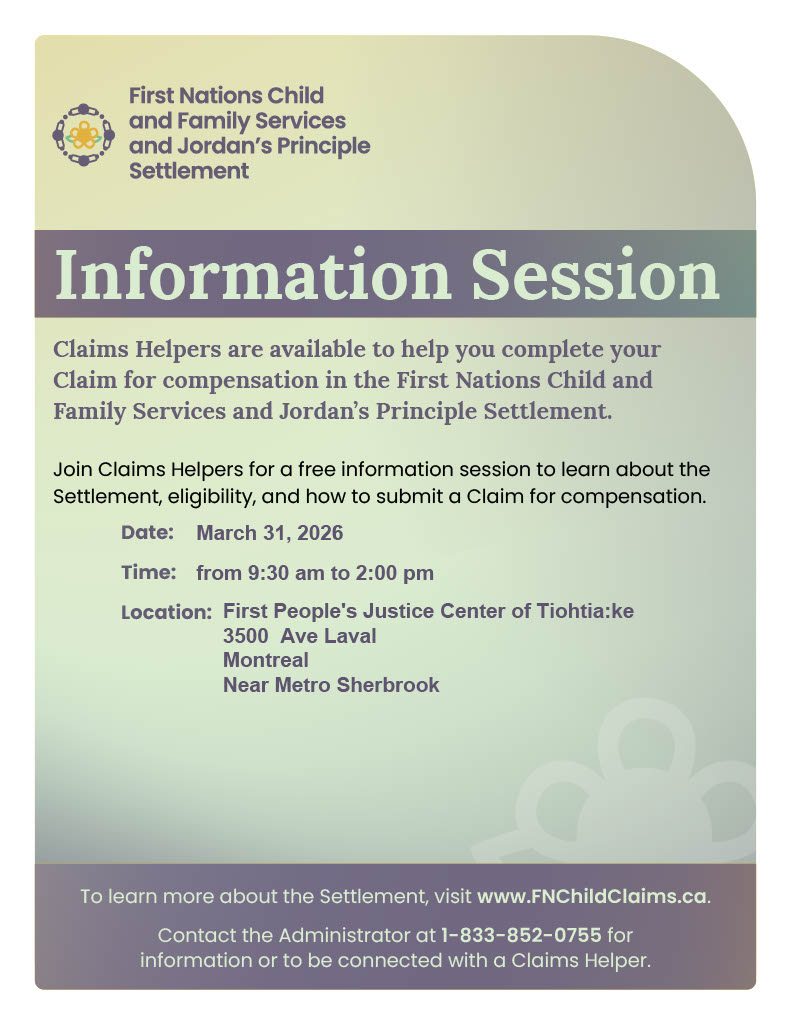 Contactez Tealey Kasenni:saks à l’adresse tealey.kasennisaks@justicemontreal.ca pour prendre rendez-vous.