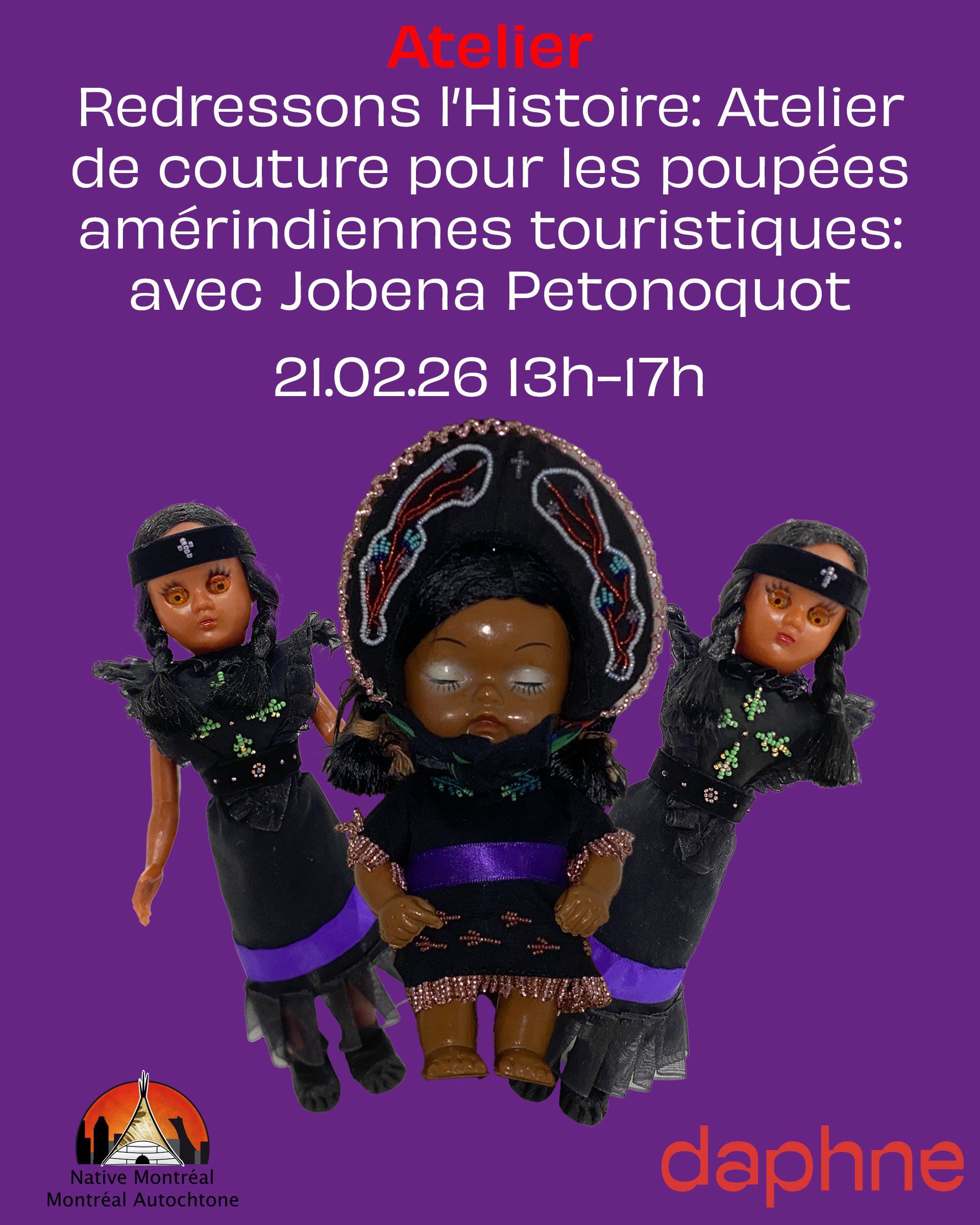 Redressons l’Histoire: Atelier de couture pour les poupées amérindiennes touristiques: daphne x Montréal Autochtone
